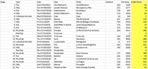 However, through gritted teeth I admit, the cause is worth supporting, and as someone who loves watching pro cycling (but hasn’t ridden a bike for 20 years!), Al and I (well as with the riding, he’s done most of the work) have come up with a metric – the aforementioned Suffer Index (see below).